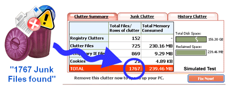 | Dump worthless files that slow down your PC! | With regular use, most PCs develop large numbers of unrequired junk files that degrade computer performance. These files are only good for one thing: causing problems. By removing these junk files, there will be a remarkable improvement in your PC performance. |  |